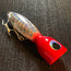 Lure wooden popping bait . Hand made wooden construction, Stainless steel wire throughout body. Vmc hooks. 18cm-137g. Target species, Giant trevally, tuna and a variety of other speedsters.