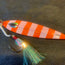 Metal Jig lure Para Blade 100mm -100g Slow flutter shallow water. Wide body design with raised ridge back aids in the flutter to the desired depth with a back and forth rocking motion attracting that wary fish. Single assist heavy duty hook at one end  allow for solid hook ups. Available in 4 brilliant colours with underwater glow-in-the-dark luminous banding as an added attractant.